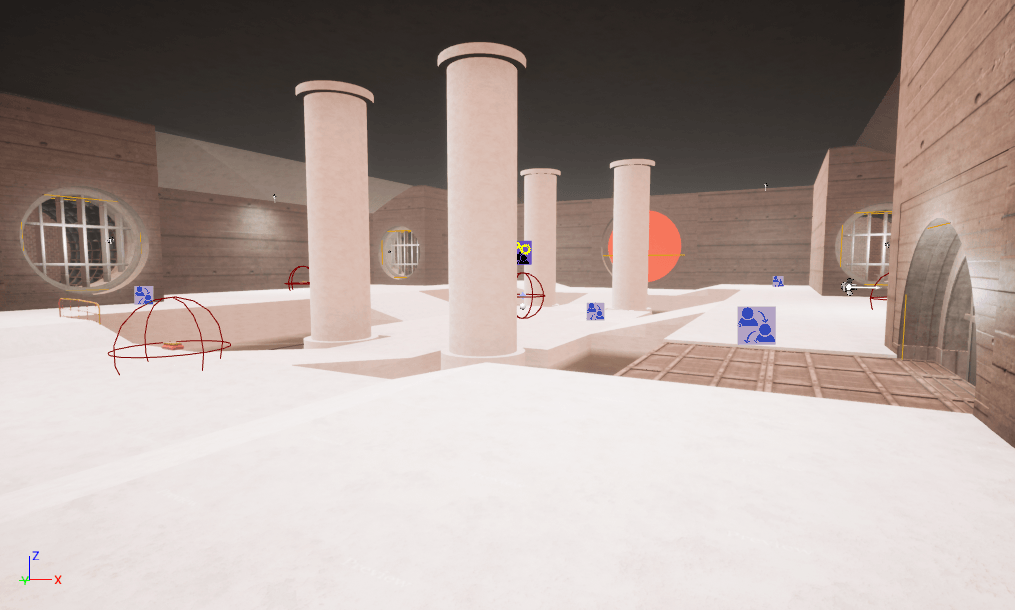 When blockout out I also kept the visual theme in mind and started exploring this by adding a prototype environment.